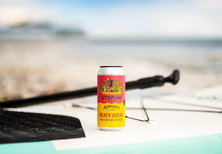 Gather your friends for a Beach Break; a Keller Lager from Adnams and Utopian Brewing from Crediton in Mid Devon. Utopian’s icon has swapped her traditional tools for a paddleboard and wetsuit as we look forward to sunnier days.