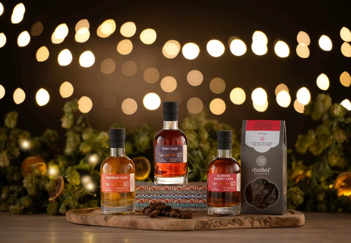 Adnams is recommending Tosier’s Smoked Cinnamon Almonds alongside our gold medal-winning Rye Malt Whisky in our Smoke & Rye Collection. It’s sensationally seasonal and would make a gift of great taste. Panning toasted almonds with their Haiti chocolate develops distinct notes or fig, red fruit and sour cherry. Adding a touch of smoked cinnamon adds subtle savoury notes. Savoured alongside the warm vanilla, raisin and peppery notes of our whisky, it’s our favourite fireside pairing.