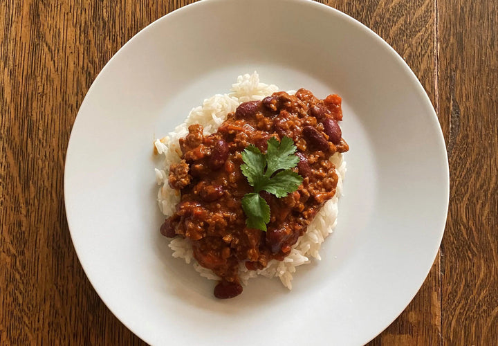 In a large saucepan, drizzle vegetable oil. Brown 800g minced beef alongside 1 diced onion and 2 teaspoons of salt. After the meat has browned, reduce to medium heat. Add 3 cloves of garlic, 3 tablespoons of chili powder, 1 tablespoon of cumin, 1 teaspoon of paprika and 1 teaspoon of black pepper. Stir in well before adding one can (330ml) of Ghost Ship 0.5%, 250ml tomato puree and 400ml of water (or slowly add more if necessary). Stir well, then simmer for 30 minutes. Add diced green pepper and kidney beans, then simmer for another 30 minutes until all the vegetables are soft and tender. Optional: serve with a generous dollop of sour cream and chives.