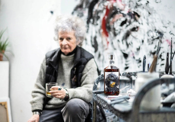 Maggi is a British artist. Though principally a painter her best-known public works are the sculptures A Conversation with Oscar Wilde and A Sculpture for Mary Wollstonecraft in London, and the 4-metre-high steel Scallop on Aldeburgh beach, Suffolk. The whisky release’s name, 6PM, is inspired by Hambling’s working day and the label shows a self-portrait, evoking herself enjoying a whisky whilst pausing for thought.