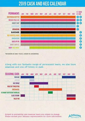 The 2019 calendar lists beers that are brewed all-year round, as well as our seasonal brews such as Adnams Oyster and Fat Sprat. Here's to a fabulous year of brewing ahead.