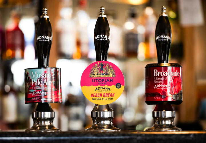 Gather your friends for a Beach Break; a Keller Lager from Adnams and Utopian Brewing from Crediton in Mid Devon. Utopian’s icon has swapped her traditional tools for a paddleboard and wetsuit as we look forward to sunnier days.